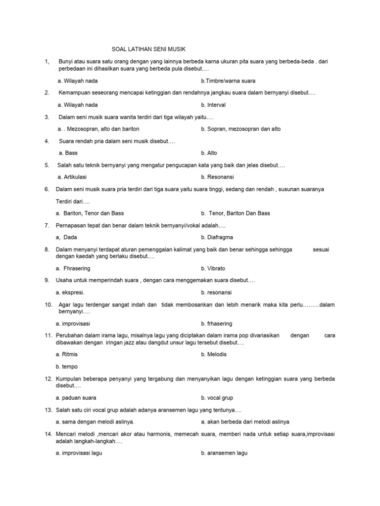 Soal Seni Musik Kelas 7